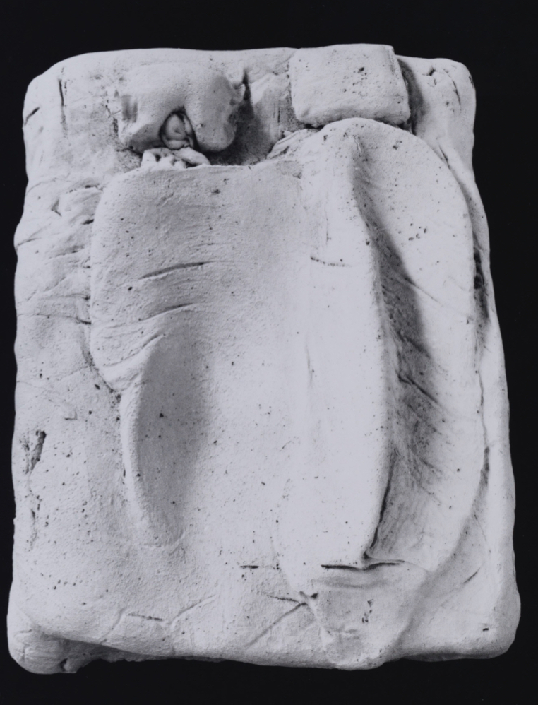 1953 ca, sandcast in gesso con tocchi di policromia, cm 74,4 x 70,2 x 6,5.